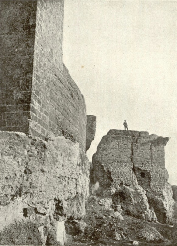 Efectos del terremoto en los bastiones del Alcázar del Rey don Pedro de Carmona (Sevilla). Fuente: El terremoto de 1504 en Carmona y en los Alcores (1918) – Bonsor, Jorge Eduardo (1855-1930). Madrid : [Real Sociedad Española de Historia Natural], 1918.