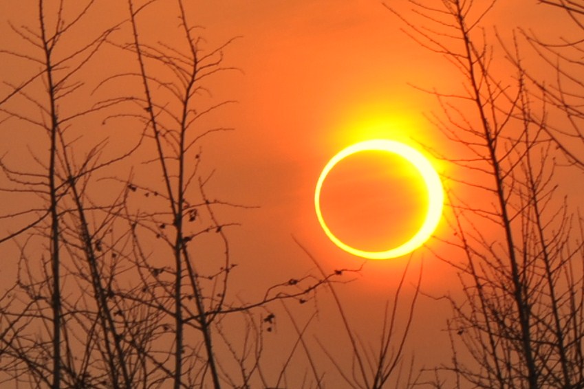 Un eclipse anular de sol, tomado a las 4:58 pm (sólo unos pocos minutos antes del anochecer) el 15 de enero de 2010 la ciudad de Zibo (China). Esto no sucederá de nuevo en este mismo lugar en más de 2.000 años. Autor: Ji Li.